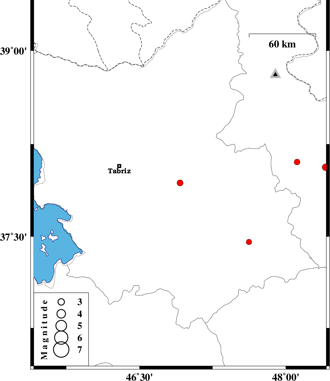 | 2015/10/12 | 13:34:31.3 | 17:04:31.3 | 37.936 | 46.916 | 14 | ML2.8 | Azarbaijan Sharghi Province, 13 km North of Bostanabad | ||