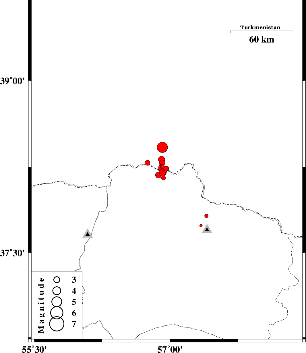 2015/10/11 17:49:39.6 21:19:39.6 37.00555.50518 ML1.8 Golestan Province, 27 km South-East of Minodasht