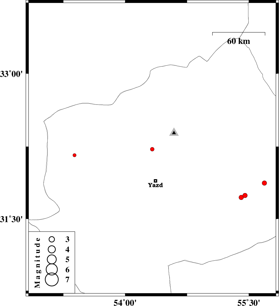 | 2015/10/16 | 10:08:54.6 | 13:38:54.6 | 32.222 | 54.328 | 16 | ML2.1 | Yazd Province, 25 km North of Ashkezar | ||