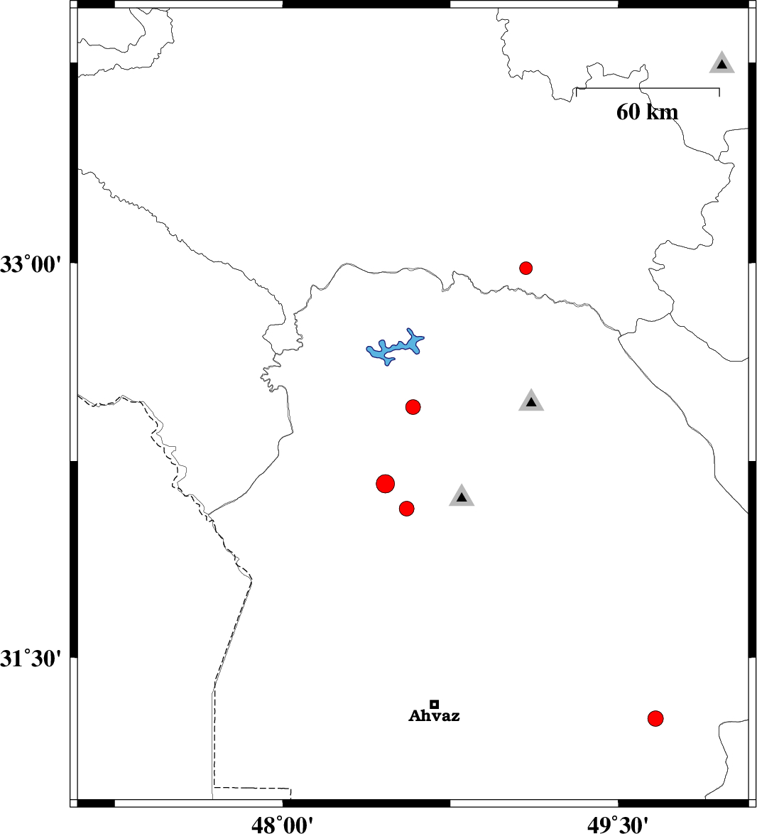 | 2015/10/18 | 00:35:54.9 | 04:05:54.9 | 32.164 | 48.46 | 14 | ML3.6 | Khoozestan Province, 20 km -East of Shush |