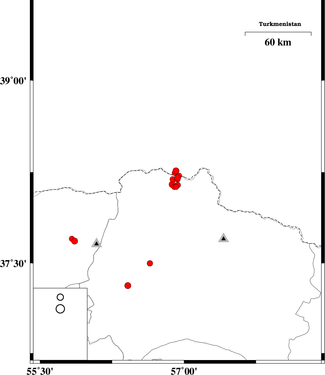 2015/10/24 00:46:53.6 04:16:53.6 37.68355.86114 ML3 Golestan Province, 47 km North-East of Kalaleh