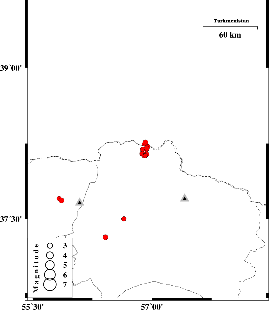 2015/10/24 00:46:53.6 04:16:53.6 37.68355.86114 ML3 Golestan Province, 47 km North-East of Kalaleh