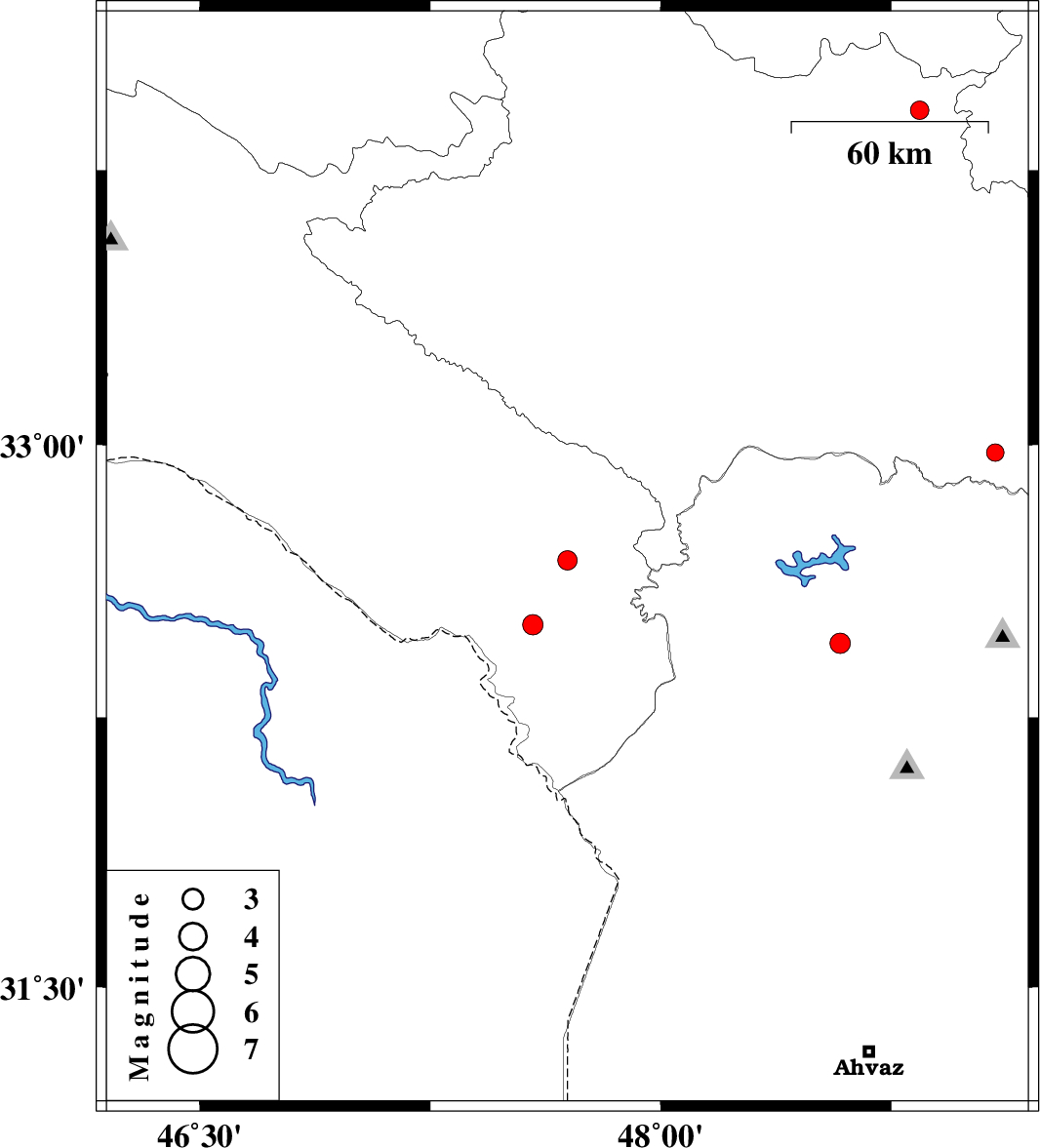 | 2015/10/23 | 09:29:03.5 | 12:59:03.5 | 33.913 | 48.842 | 6 | ML2.7 | Lorestan Province, 8 km of Borujerd | ||