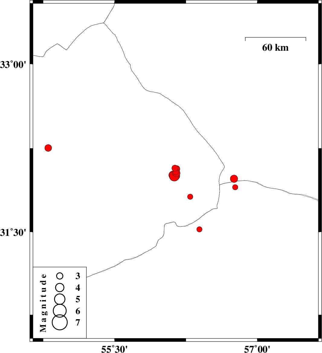 2015/10/22 05:14:58.6 08:44:58.6 32.0156.11315 ML4 Yazd Province, 81 km North-East of Bafq