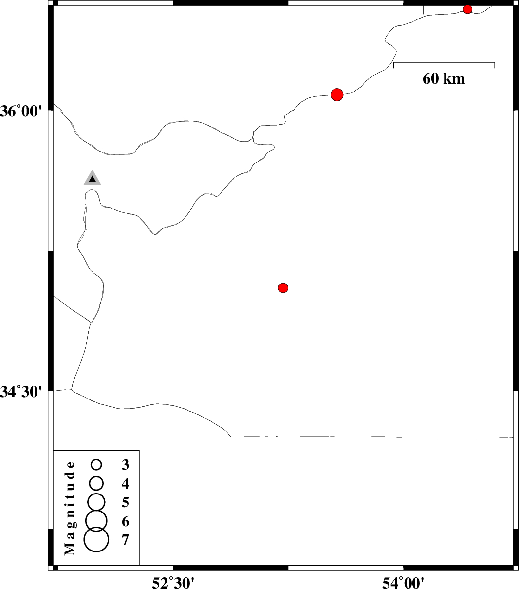 | 2015/11/05 | 23:21:30.3 | 02:51:30.3 | 35.052 | 53.216 | 18 | ML2.8 | Semnan Province, 60 km South-West of Semnan | ||