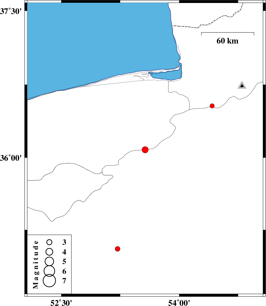 | 2015/10/31 | 00:56:36.7 | 04:26:36.7 | 36.532 | 54.419 | 14 | ML2.6 | Golestan Province, 34 km South of Gorgan |