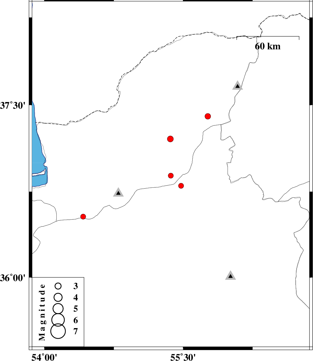 | 2015/11/07 | 15:37:51.7 | 19:07:51.7 | 36.889 | 55.366 | 8 | ML2.5 | Golestan Province, 24 km South-East of Ramian | ||