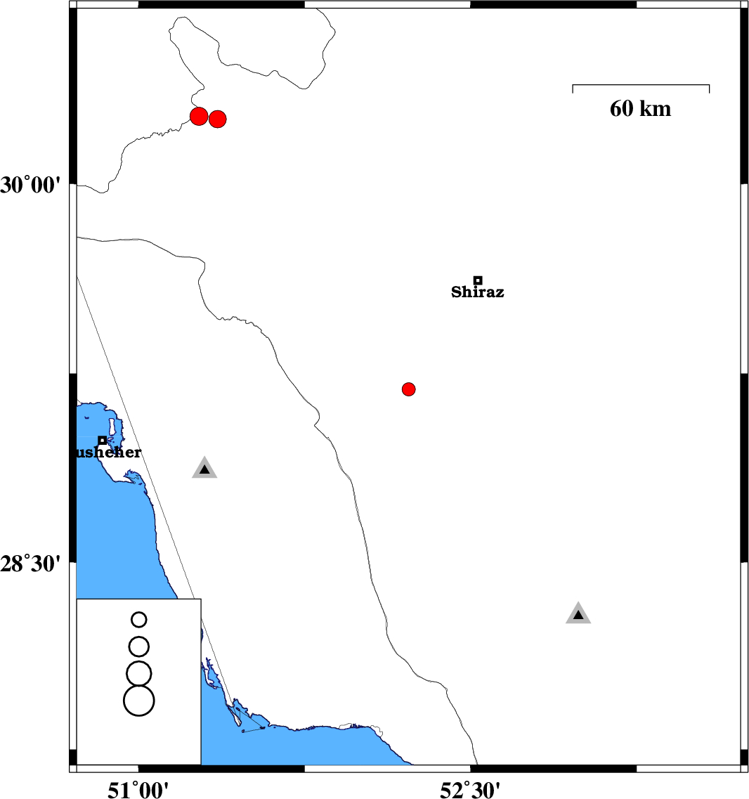 | 2015/11/07 | 22:24:14.6 | 01:54:14.6 | 30.253 | 51.357 | 16 | ML3.5 | Fars Province, 22 km North-West of Nurabad |