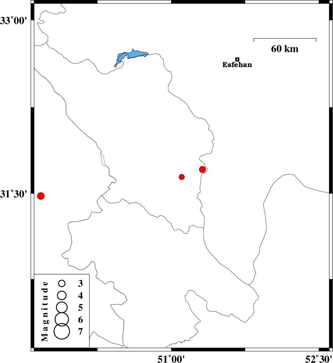 | 2015/12/03 | 01:49:22.2 | 05:19:22.2 | 31.709 | 51.318 | 18 | ML2.9 | Chaharmahal Bakhtiari Province, 29 km South of Borujen |