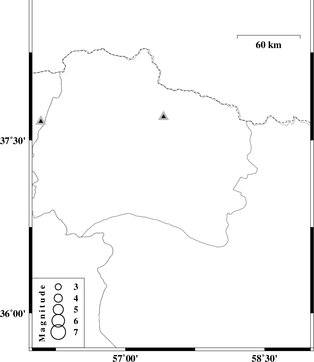 | 2015/12/05 | 21:51:39.7 | 01:21:39.7 | 37.196 | 57.495 | 14 | ML2.4 | Khorasan(north) Province, 15 km North of Esfarayen |