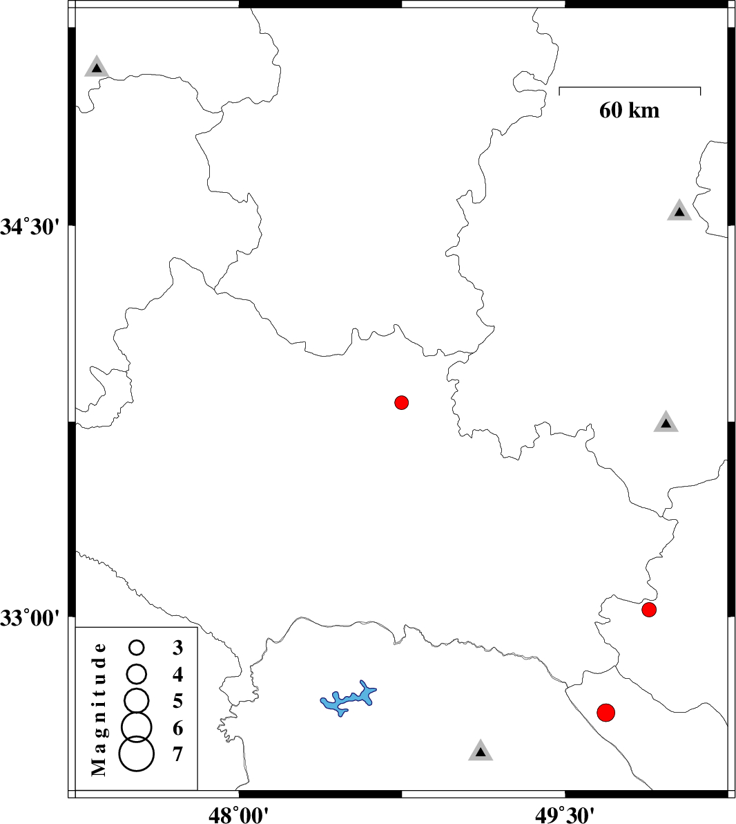 | 2015/12/09 | 07:39:01.4 | 11:09:01.4 | 33.824 | 48.748 | 14 | ML2.8 | Lorestan Province, 8 km of Borujerd | ||