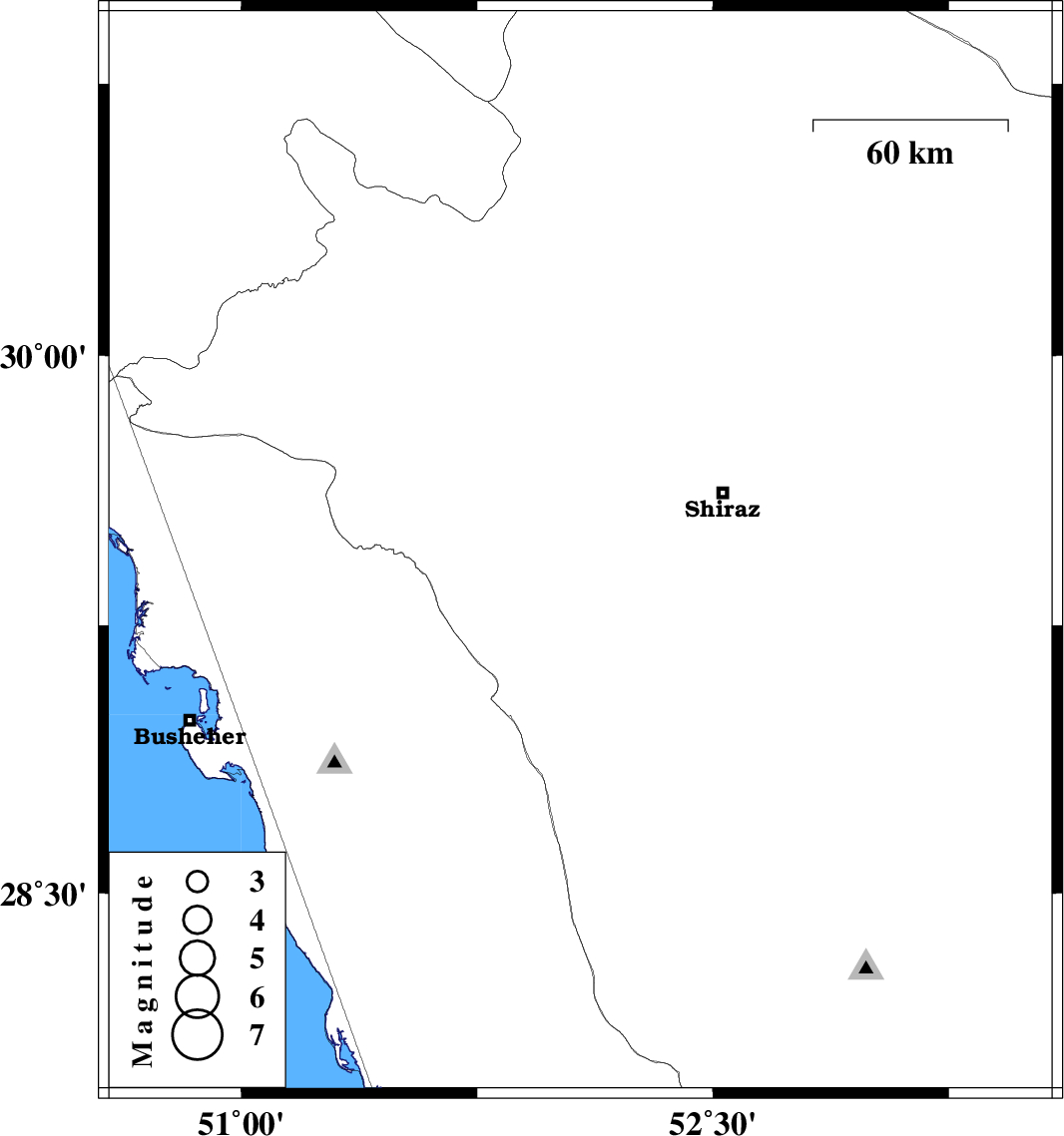 | 2015/12/13 | 12:21:21.1 | 15:51:21.1 | 29.451 | 52.079 | 14 | ML2.7 | Fars Province, 64 km North of Farashband |
