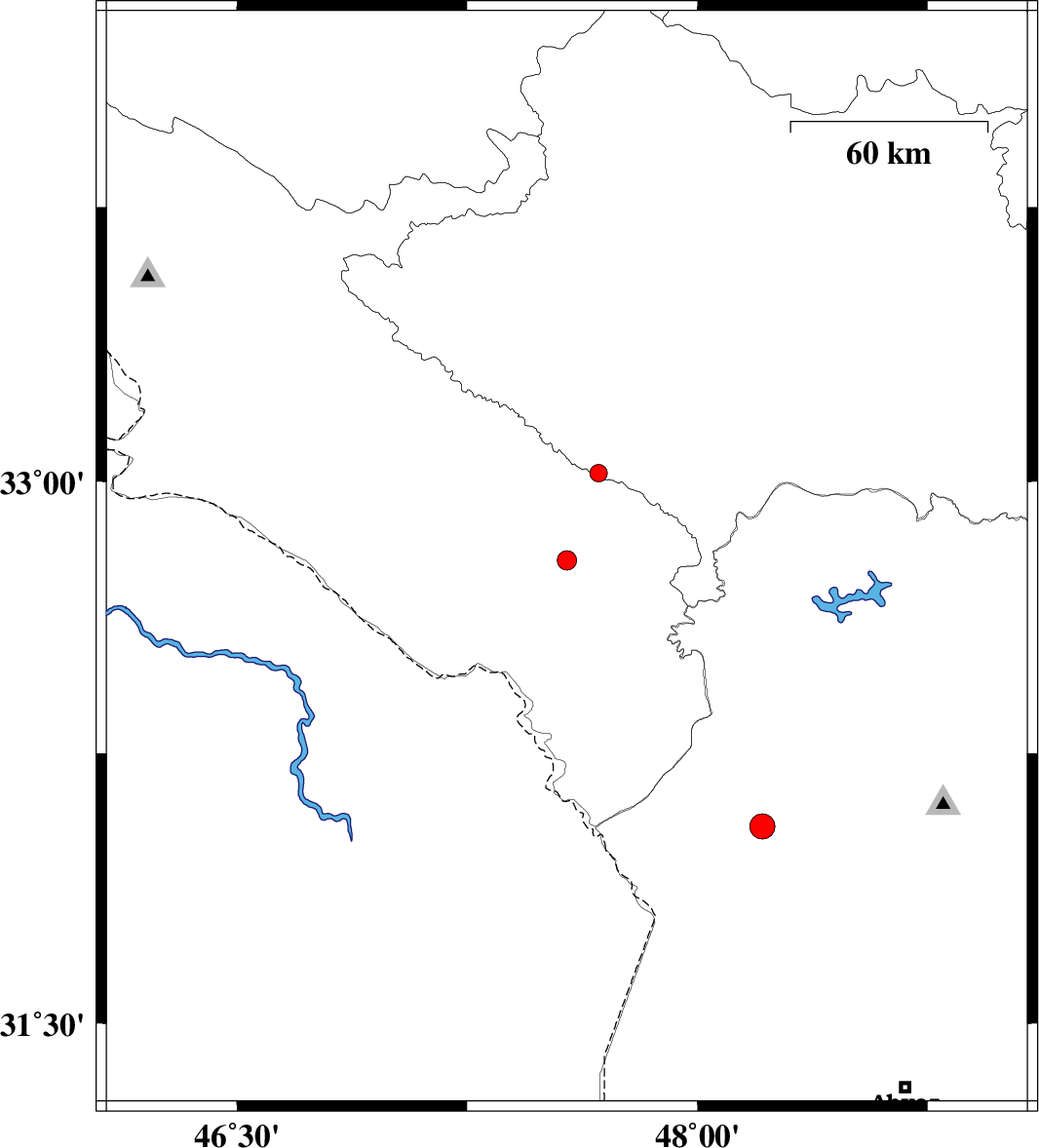 | 2015/12/13 | 20:44:11.9 | 00:14:11.9 | 32.048 | 48.211 | 15 | ML3.6 | Khoozestan Province, 17 km South of Shush |