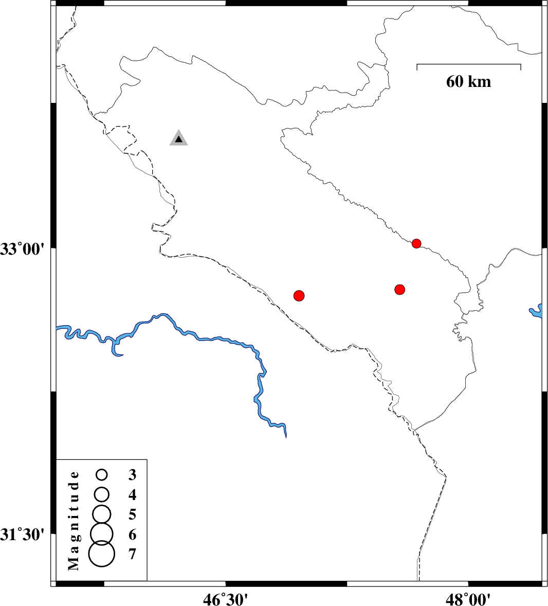 | 2015/12/17 | 00:53:19.7 | 04:23:19.7 | 32.783 | 47.575 | 14 | ML2.8 | Ilam Province, 19 km South-East of Abdanan | ||