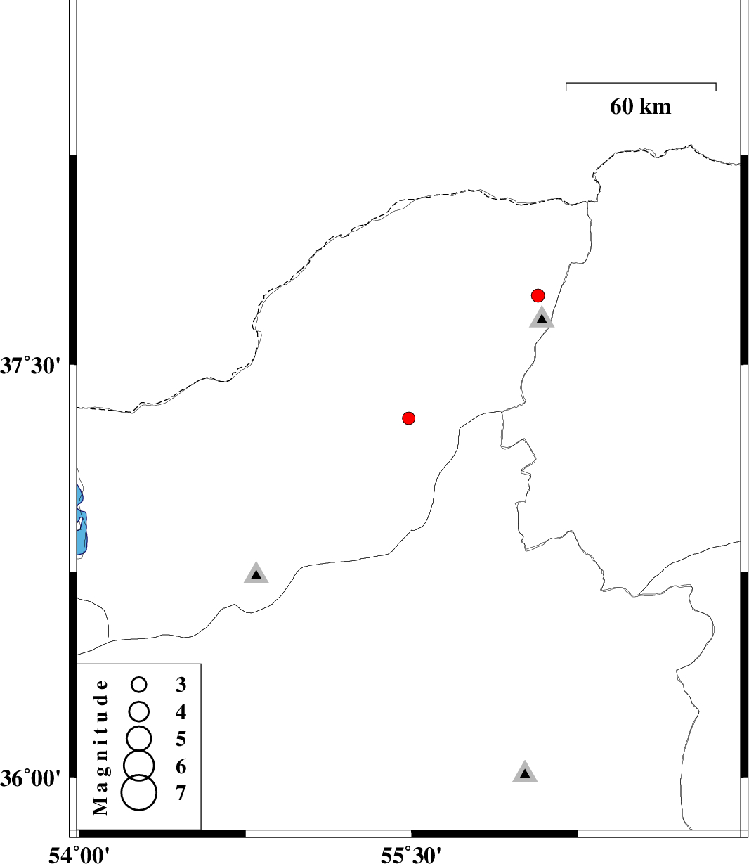 | 2015/12/20 | 03:41:20.3 | 07:11:20.3 | 37.747 | 56.072 | 14 | ML2.7 | Golestan Province, 65 km North-East of Kalaleh |