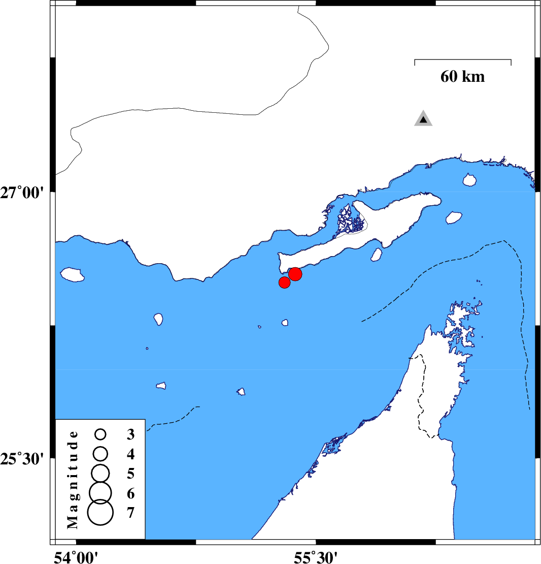 | 2016/01/01 | 23:17:30.3 | 02:47:30.3 | 26.491 | 55.303 | 15 | ML3.3 | Persian Gulf, 45 km -East of Bandar-e lengeh |