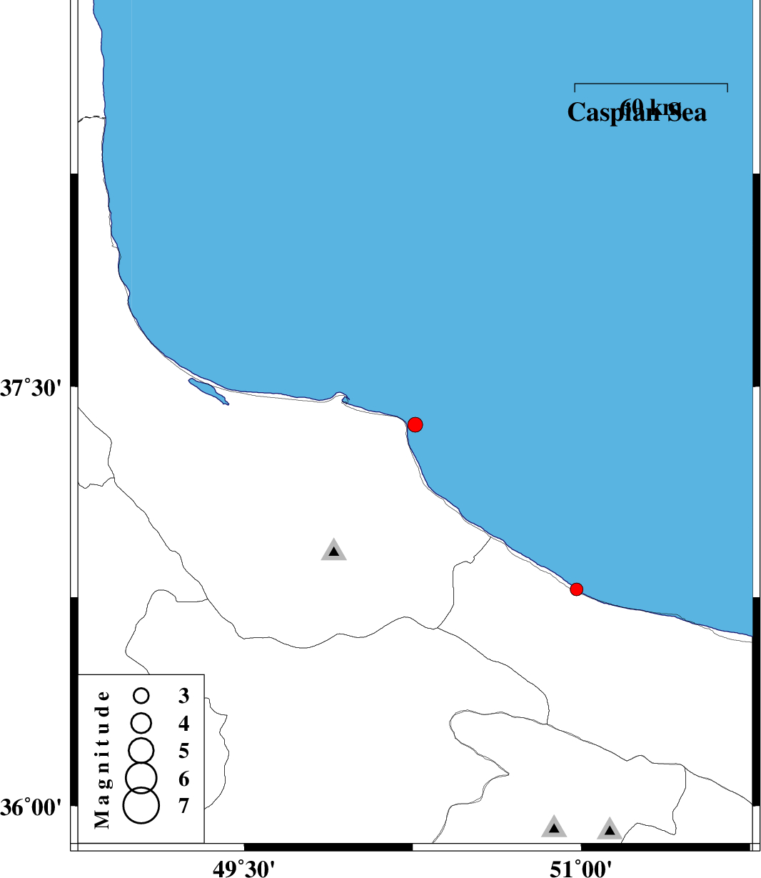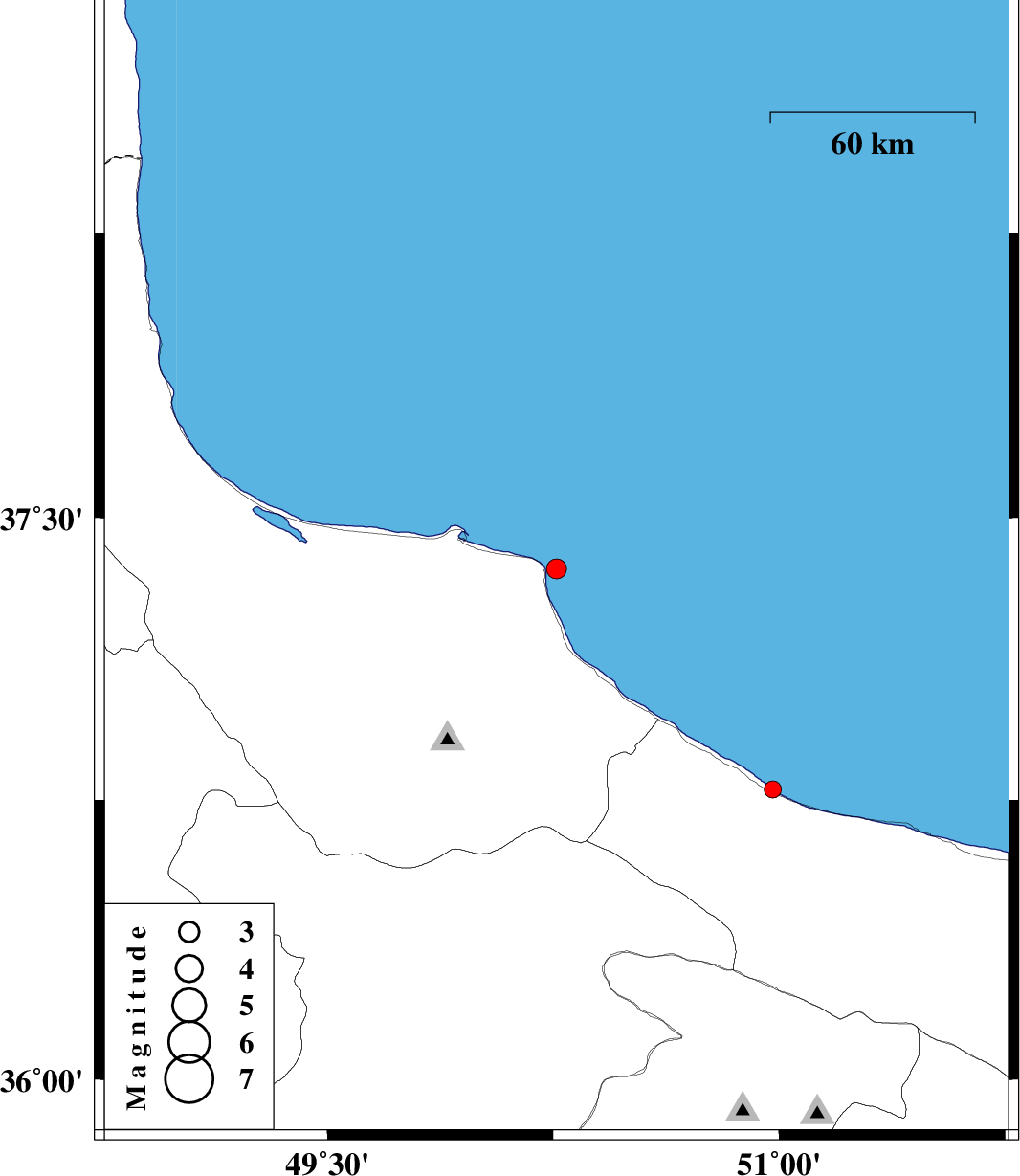| 2016/01/05 | 04:43:46.5 | 08:13:46.5 | 37.365 | 50.261 | 15 | ML3 | Caspian Sea, 25 km North of Rudsar | ||