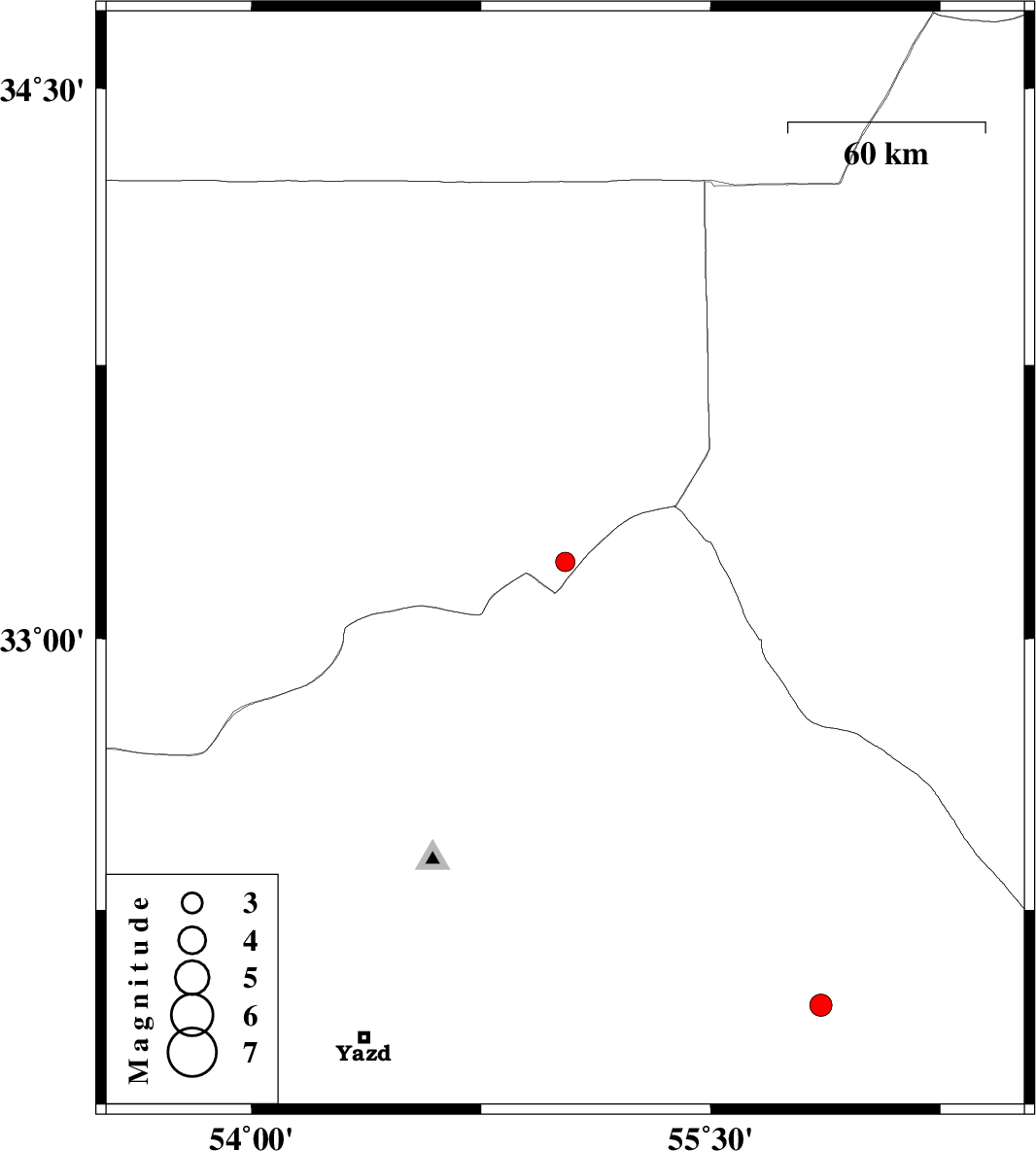 | 2016/01/04 | 09:35:52.3 | 13:05:52.3 | 31.985 | 55.86 | 14 | ML3.2 | Yazd Province, 61 km North-East of Bafq |