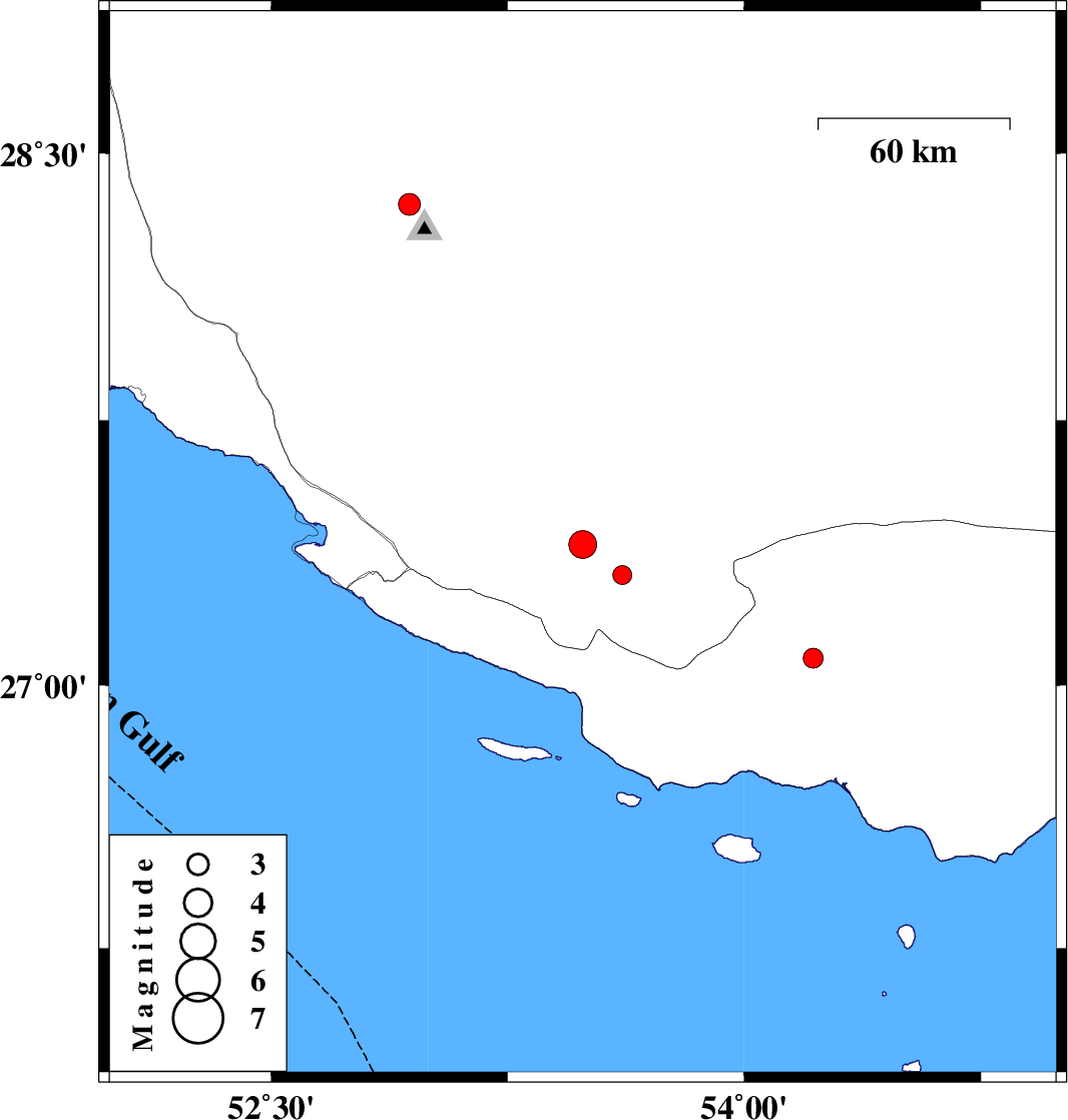 | 2016/01/08 | 21:19:31.8 | 00:49:31.8 | 27.312 | 53.613 | 16 | ML2.7 | Fars Province, 44 km -East of Lamerd | ||