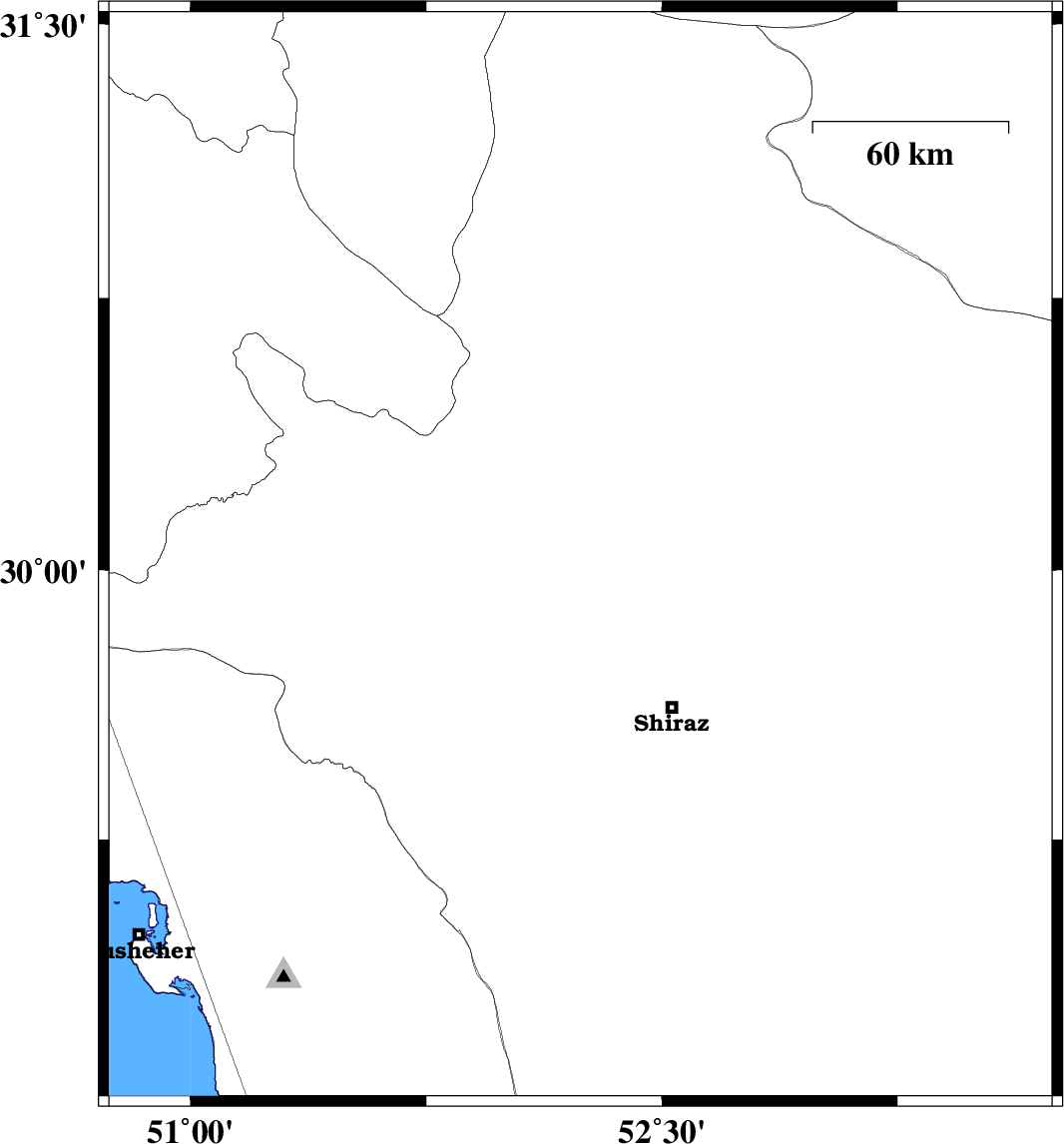 | 2016/01/06 | 06:10:57.5 | 09:40:57.5 | 29.132 | 51.298 | 14 | ML3.5 | Bushehr Province, 17 km South of Borazjan |