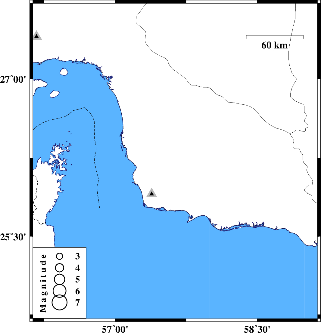 | 2016/01/16 | 15:59:20.9 | 19:29:20.9 | 26.212 | 57.634 | 15 | ML3.4 | Hormozgan Province, 66 km North-West of Jask |