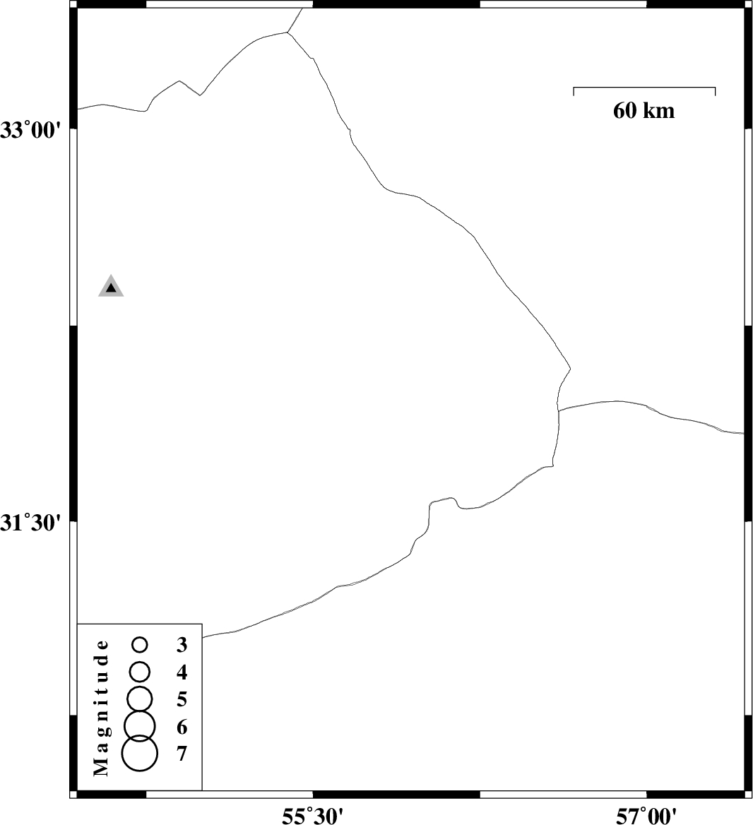 | 2016/01/27 | 10:29:24.3 | 13:59:24.3 | 31.956 | 55.939 | 14 | ML2.9 | Yazd Province, 64 km North-East of Bafq |