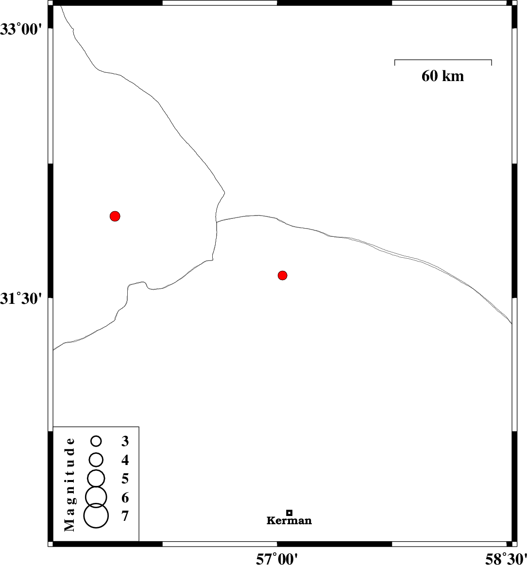 | 2016/01/28 | 04:05:14.0 | 07:35:14.0 | 31.625 | 57.034 | 18 | ML2.7 | Kerman Province, 45 km North-East of Ravar | ||