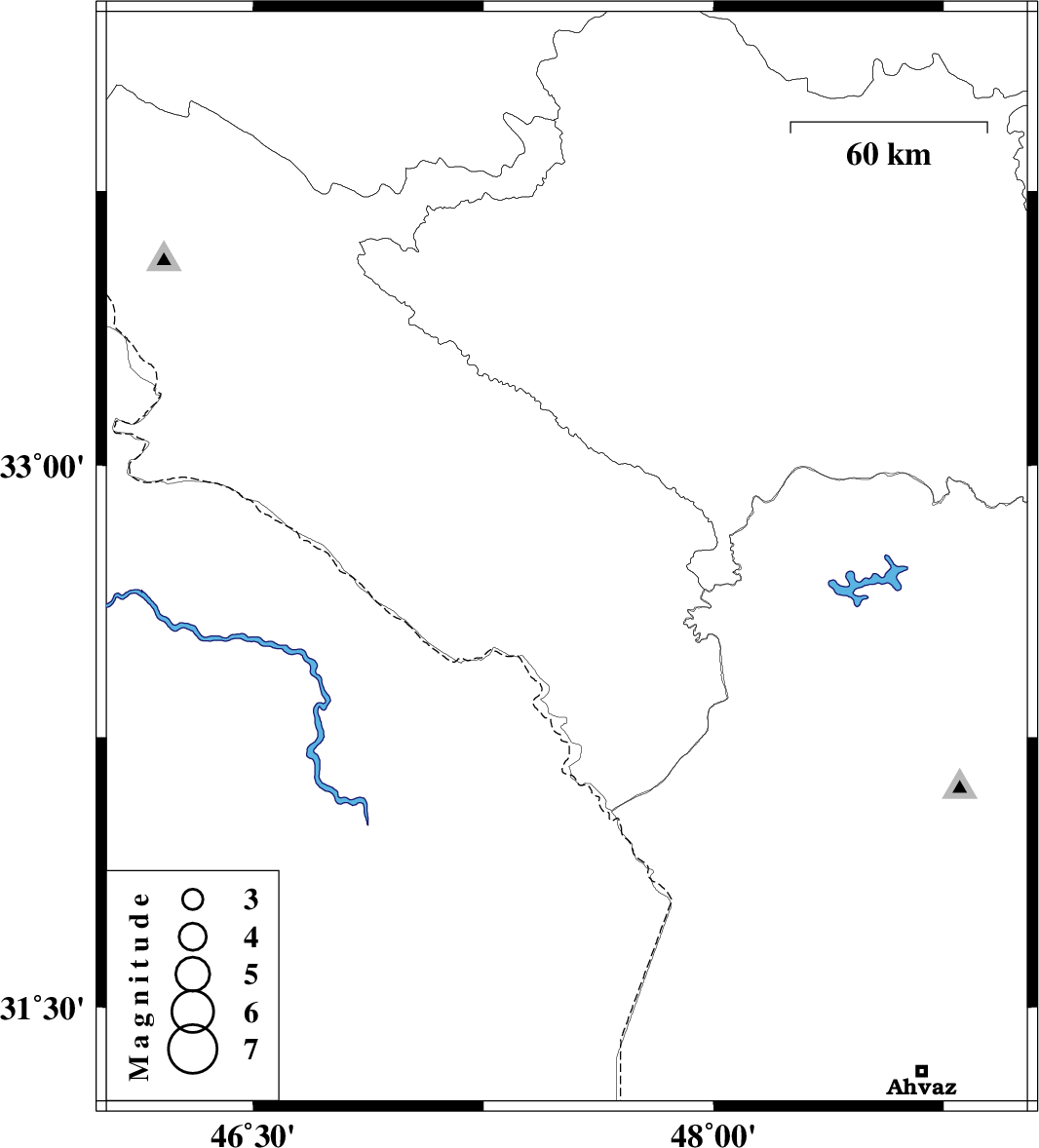 | 2016/02/01 | 06:19:20.4 | 09:49:20.4 | 32.738 | 47.522 | 16 | ML2.8 | Ilam Province, 22 km South of Abdanan |