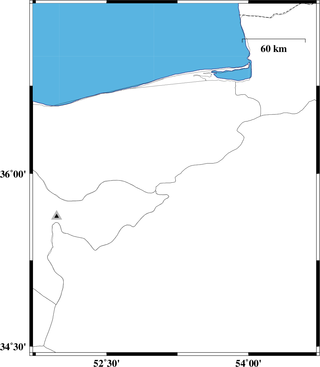 | 2016/01/30 | 03:01:08.7 | 06:31:08.7 | 36.434 | 52.079 | 16 | ML2.7 | Mazandaran Province, 16 km South of Nur | ||
