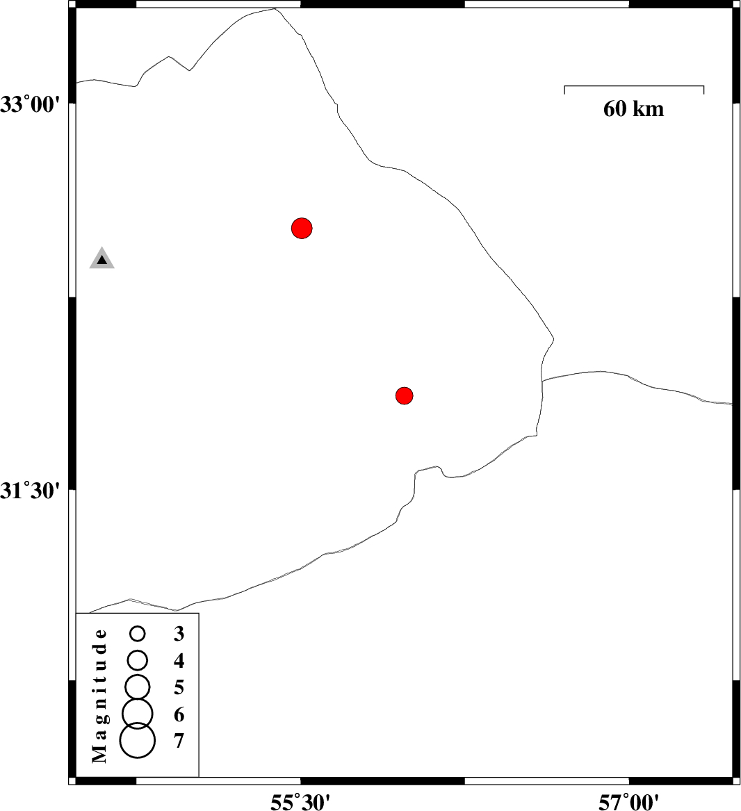 | 2016/02/01 | 13:46:32.6 | 17:16:32.6 | 32.517 | 55.505 | 14 | ML4.3 | Yazd Province, 102 km North-East of Bafq |