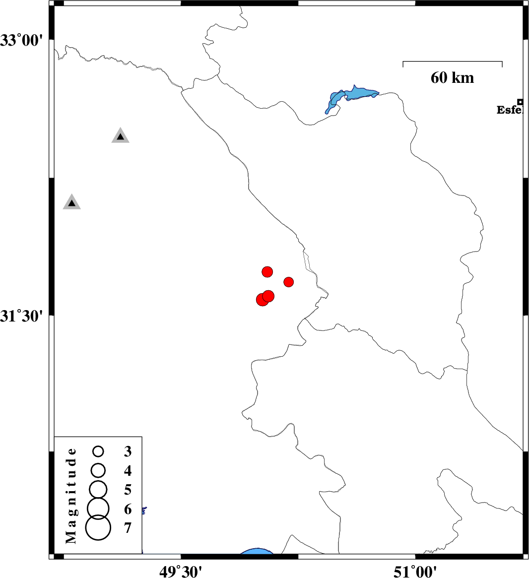 | 2016/02/19 | 07:29:02.2 | 10:59:02.2 | 31.737 | 50.051 | 15 | ML3.1 | Khoozestan Province, 20 km -East of Izeh |