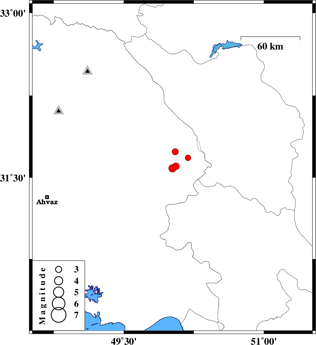 | 2016/02/19 | 07:29:02.2 | 10:59:02.2 | 31.737 | 50.051 | 15 | ML3.1 | Khoozestan Province, 20 km -East of Izeh |