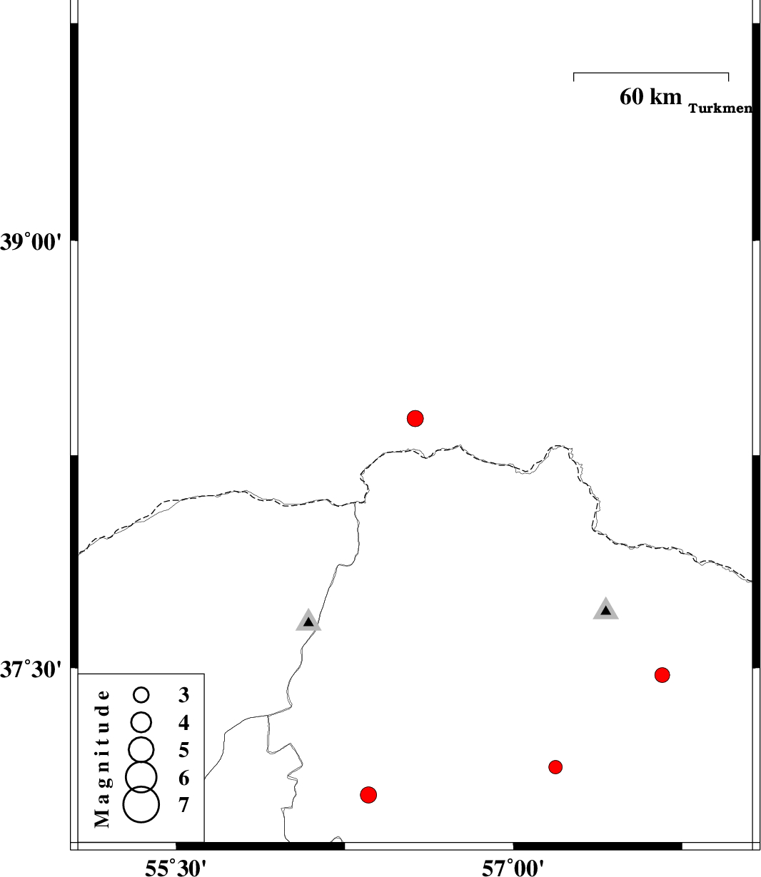 | 2016/01/24 | 21:05:34.2 | 00:35:34.2 | 37.475 | 57.661 | 14 | ML3 | Khorasan(north) Province, 29 km -East of Bojnurd |