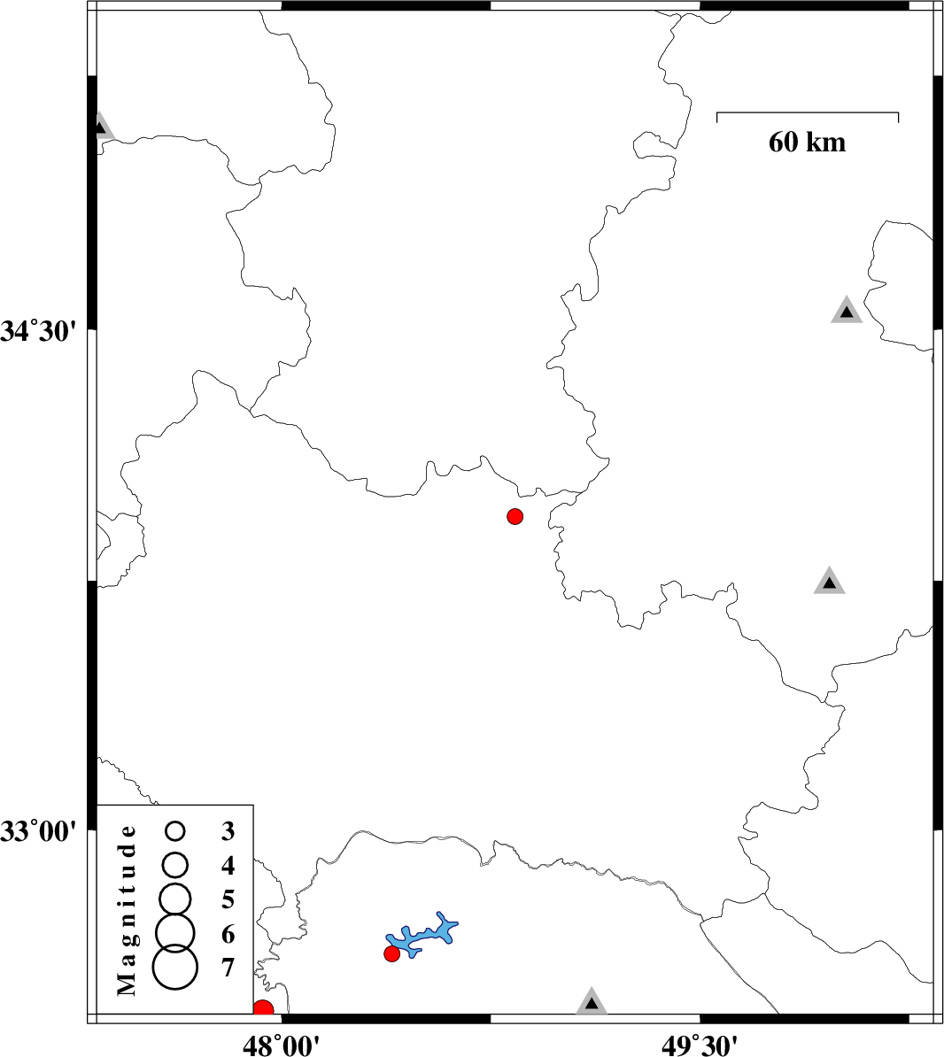 | 2016/02/01 | 06:19:20.4 | 09:49:20.4 | 32.738 | 47.522 | 16 | ML2.8 | Ilam Province, 22 km South of Abdanan |