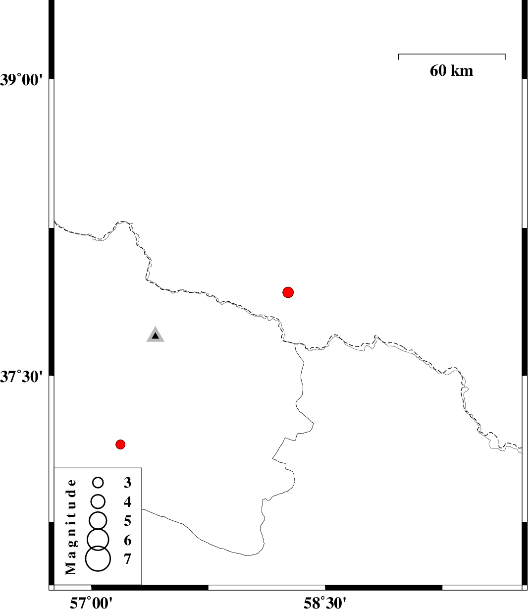 | 2016/03/02 | 16:07:06.2 | 19:37:06.2 | 37.924 | 58.261 | 14 | ML3.1 | Turkmenistan, 11 km -West of Ashgabat | ||