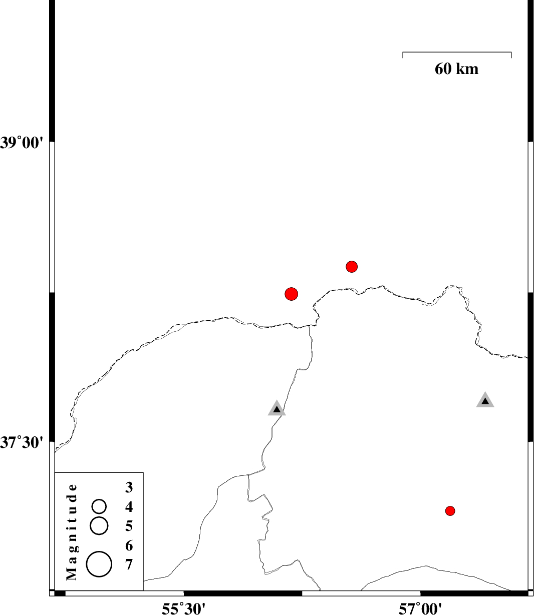 | 2016/02/03 | 07:17:42.2 | 10:47:42.2 | 37.148 | 57.187 | 15 | ML2.7 | Khorasan(north) Province, 29 km -West of Esfarayen |