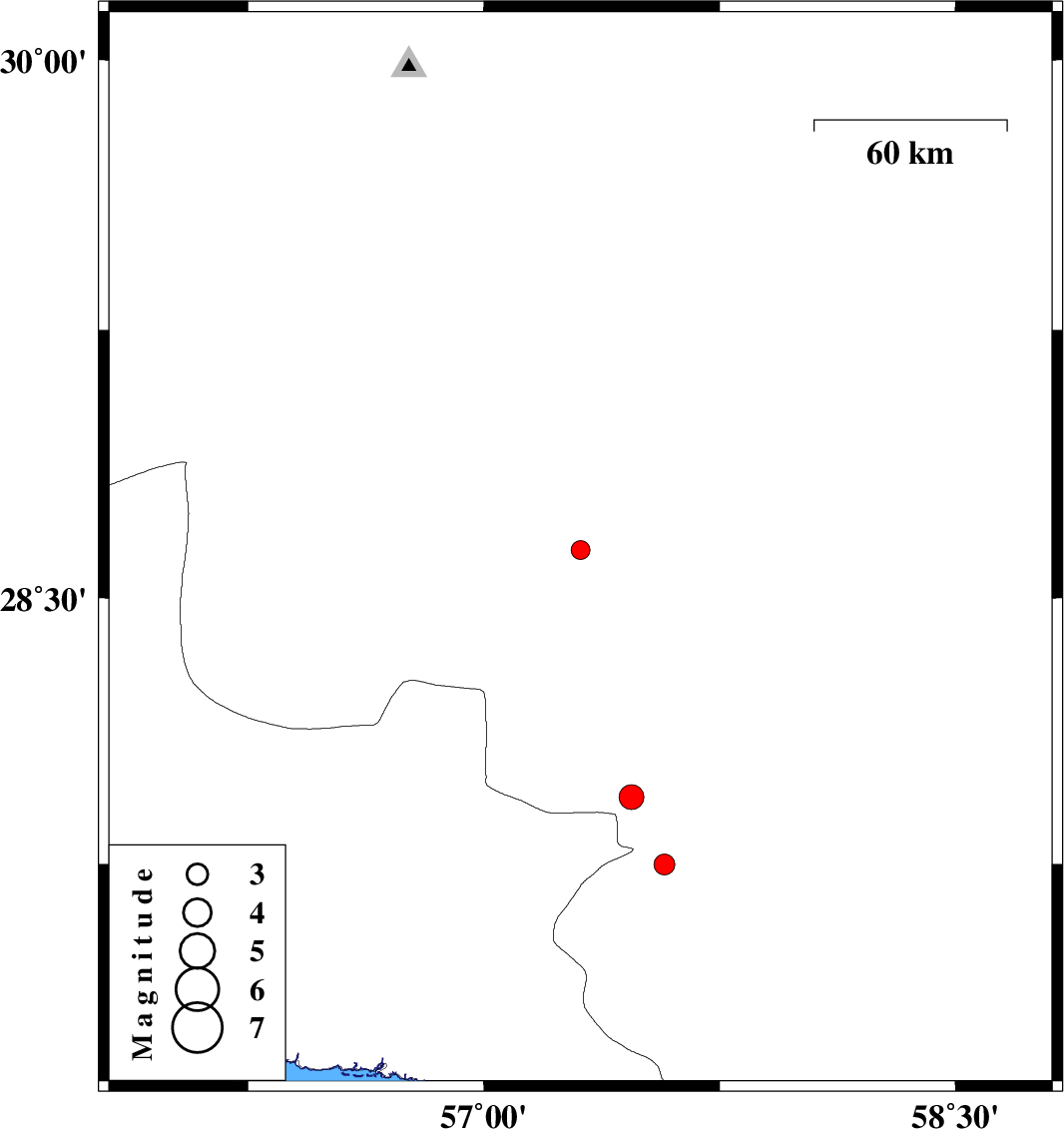 | 2016/03/02 | 07:16:07.1 | 10:46:07.1 | 27.748 | 57.574 | 14 | ML2.9 | Kerman Province, 25 km South-West of Kahnuj | ||