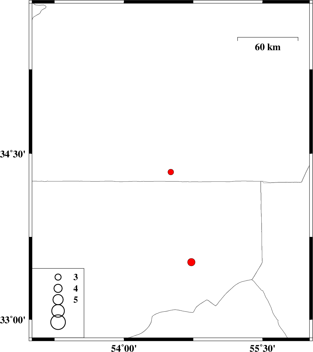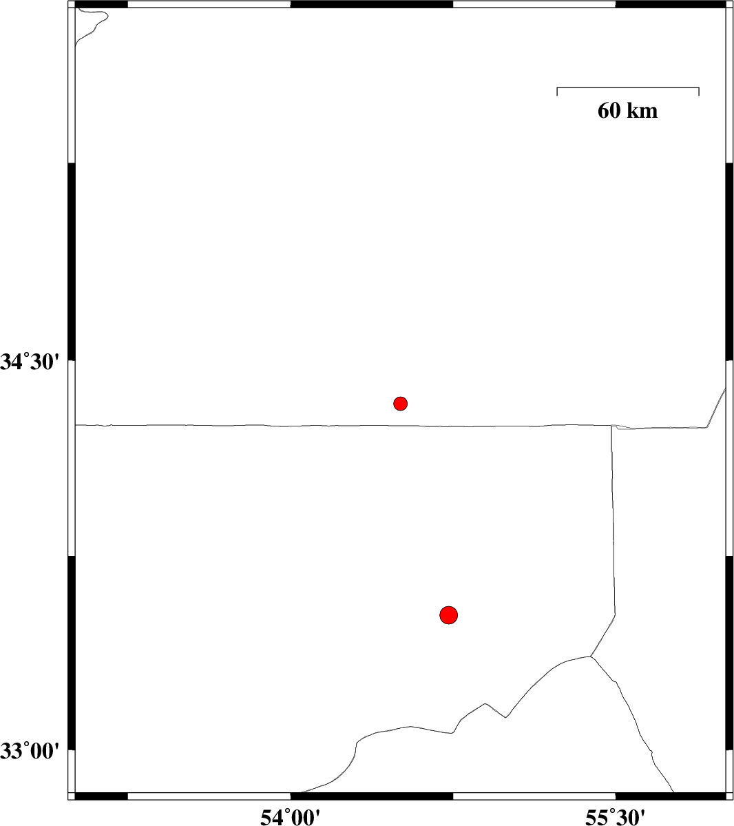 | 2016/02/23 | 15:38:14.8 | 19:08:14.8 | 33.522 | 54.729 | 15 | ML3.7 | Esfahan Province, 150 km North-East of Ardakan |