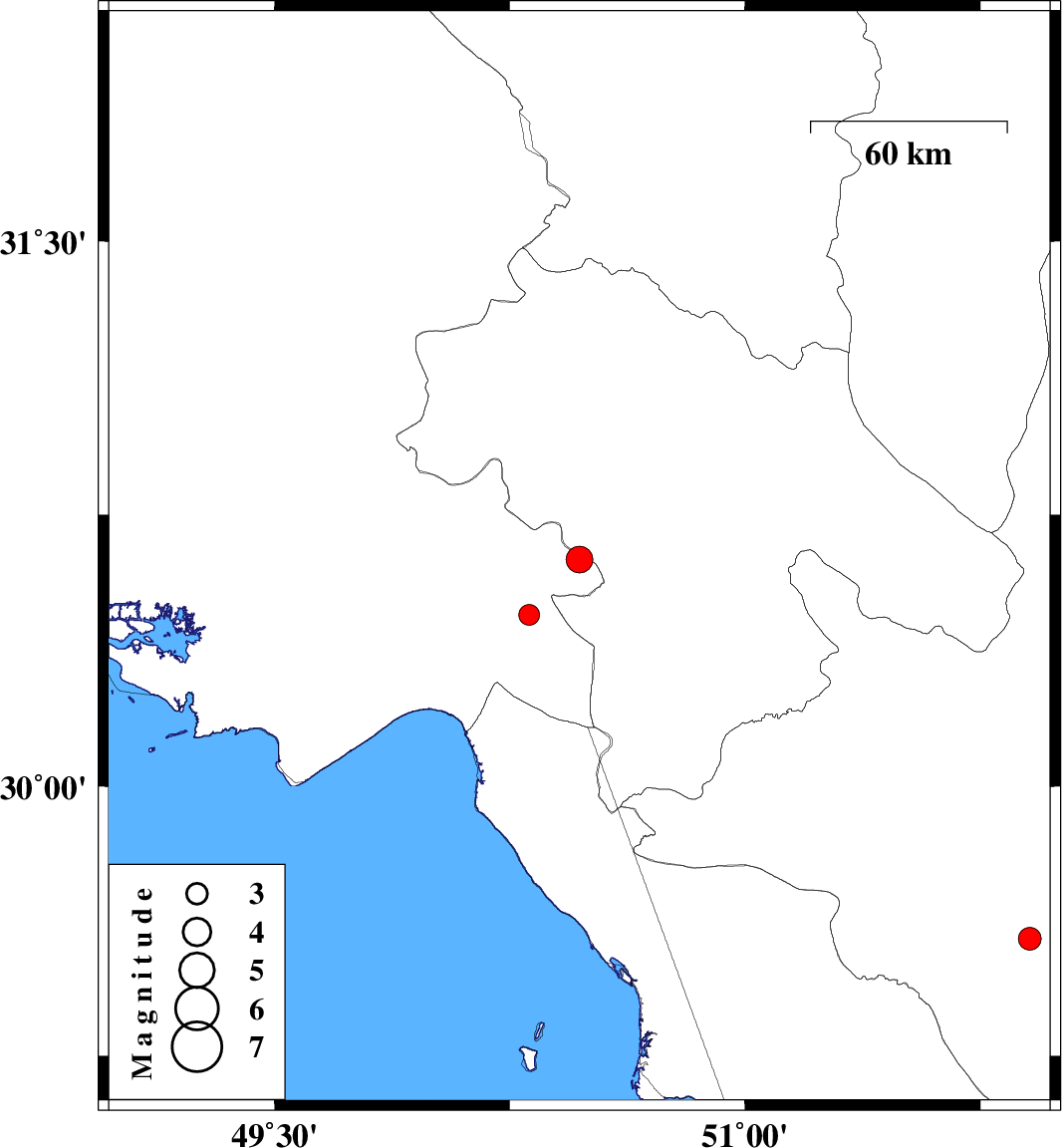 | 2016/03/10 | 09:16:25.7 | 12:46:25.7 | 30.627 | 50.472 | 14 | ML3.8 | Khoozestan Province, 20 km South of Dehdasht | ||