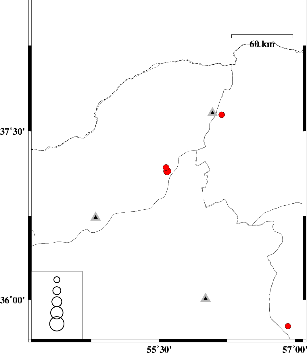 | 2016/03/13 | 03:55:38.5 | 07:25:38.5 | 37.179 | 55.577 | 15 | ML3 | Golestan Province, 18 km -East of Minodasht | ||
