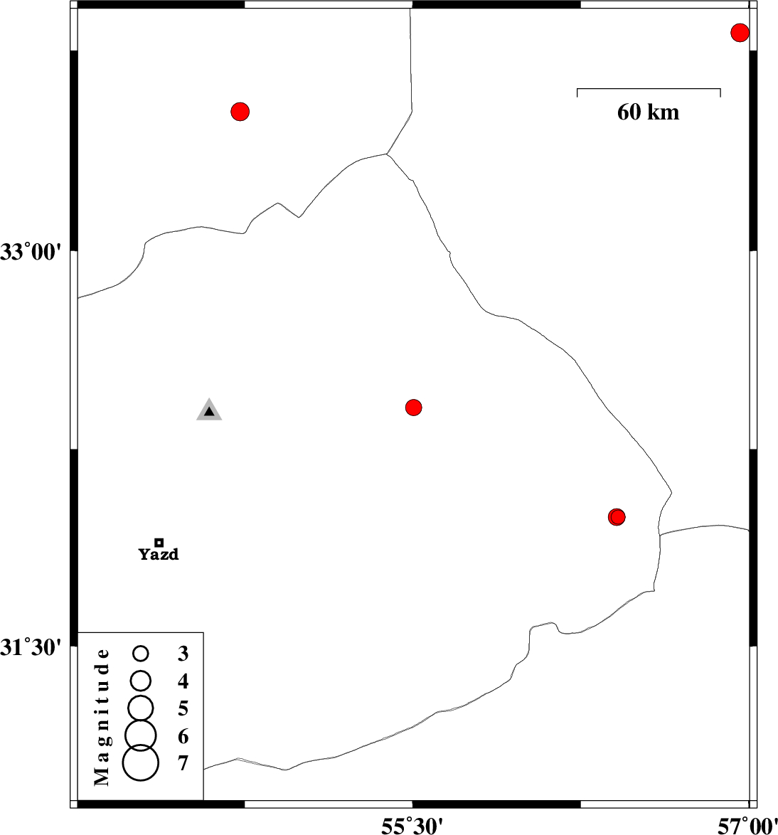 | 2016/03/14 | 06:52:16.0 | 10:22:16.0 | 32.408 | 55.504 | 14 | ML3.2 | Yazd Province, 90 km North-East of Bafq | ||