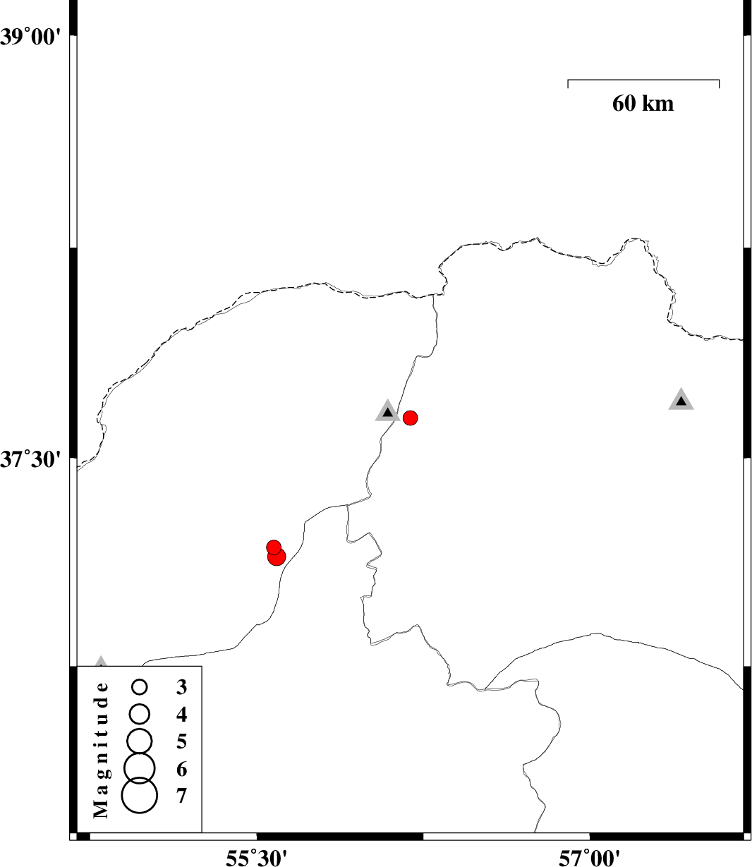 | 2016/03/13 | 03:03:19.6 | 06:33:19.6 | 37.146 | 55.589 | 15 | ML3.6 | Golestan Province, 20 km -East of Minodasht |