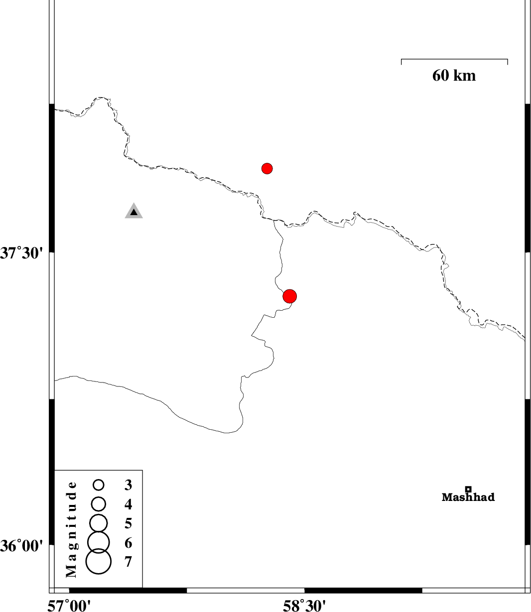| 2016/03/14 | 17:26:49.2 | 20:56:49.2 | 37.276 | 58.405 | 14 | ML3.9 | Khorasan(center) Province, 21 km North-West of Quchan | ||