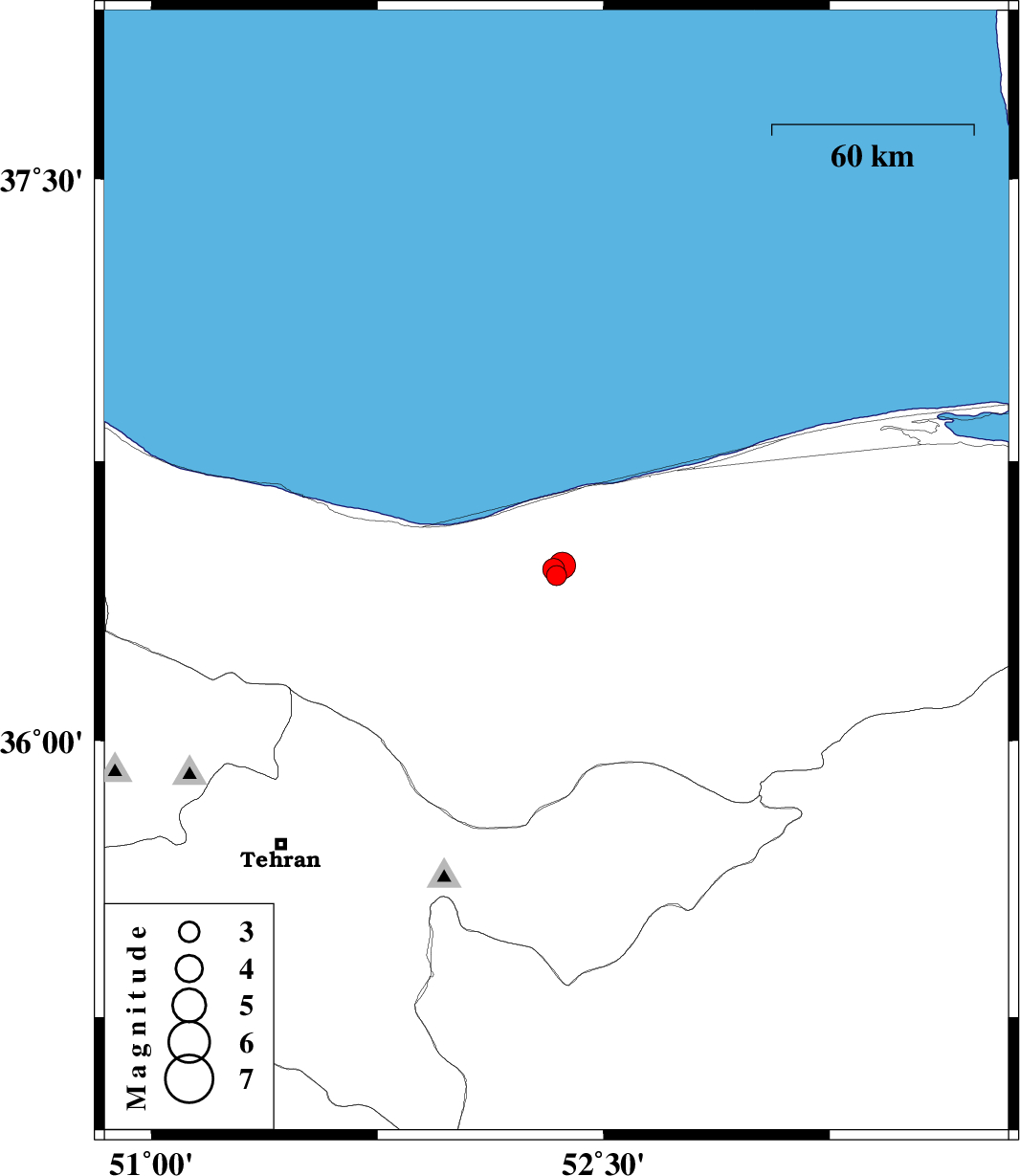 | 2016/03/23 | 07:48:23.3 | 12:18:23.3 | 36.47 | 52.363 | 14 | ML4 | Mazandaran Province, 1 km of Amol |