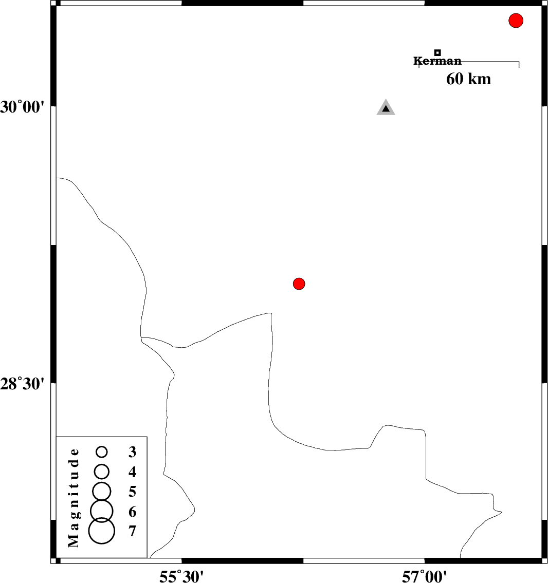 | 2016/04/05 | 04:08:00.2 | 08:38:00.2 | 30.459 | 57.563 | 14 | ML3.9 | Kerman Province, 50 km North-East of Kerman | ||