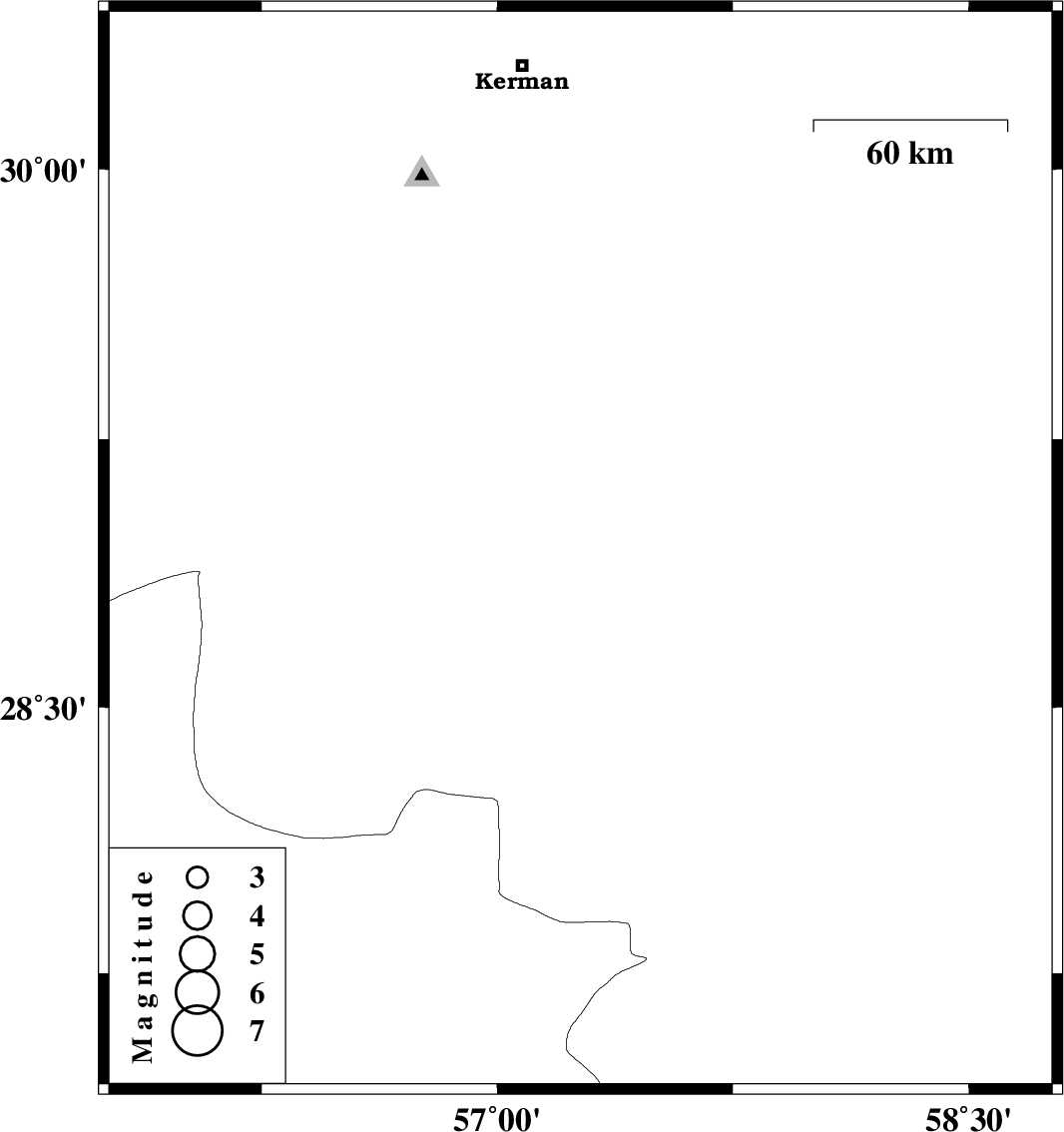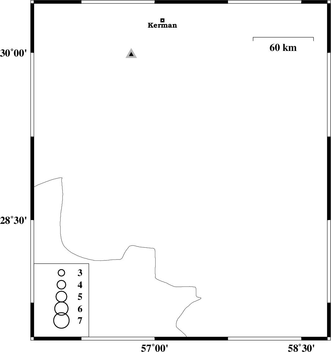| 2016/03/26 | 04:42:59.3 | 09:12:59.3 | 28.937 | 57.265 | 46 | ML3.3 | Kerman Province, 55 km North-West of Jiroft |