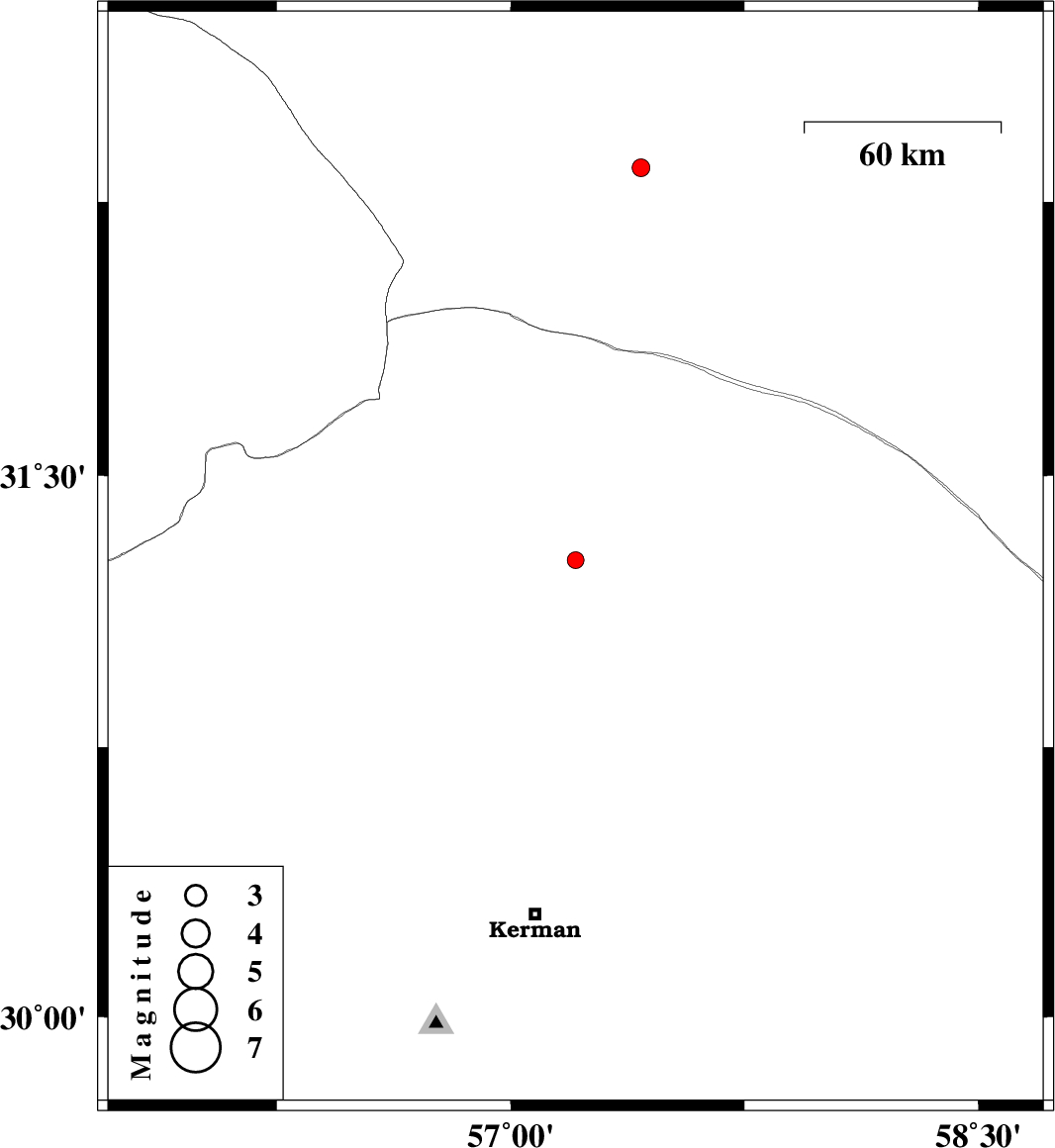 | 2016/04/16 | 17:49:15.6 | 22:19:15.6 | 31.268 | 57.208 | 14 | ML2.4 | Kerman Province, 38 km -East of Ravar | ||