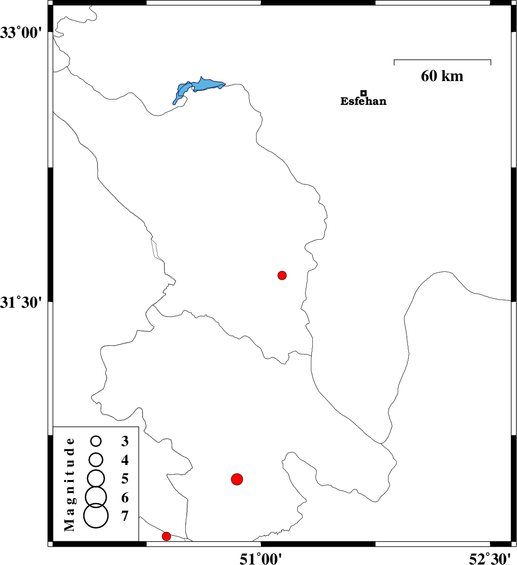 | 2016/04/18 | 23:54:50.5 | 04:24:50.5 | 31.647 | 51.138 | 15 | ML2.6 | Chaharmahal Bakhtiari Province, 38 km South-West of Borujen | ||
