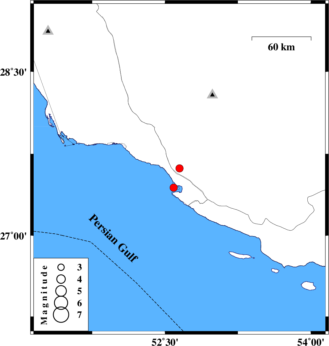 | 2016/04/23 | 19:53:59.5 | 00:23:59.5 | 27.44 | 52.589 | 46 | ML3.5 | Persian Gulf, 32 km South-West of Mehr | ||