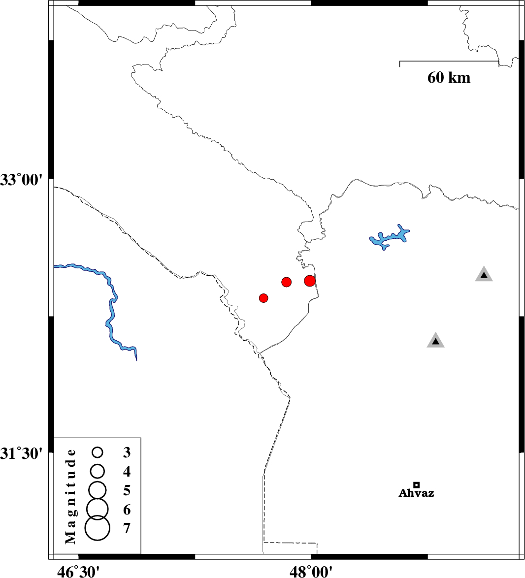 | 2016/04/24 | 02:33:07.6 | 07:03:07.6 | 32.349 | 47.692 | 17 | ML2.5 | Ilam Province, 55 km North-West of Shush |